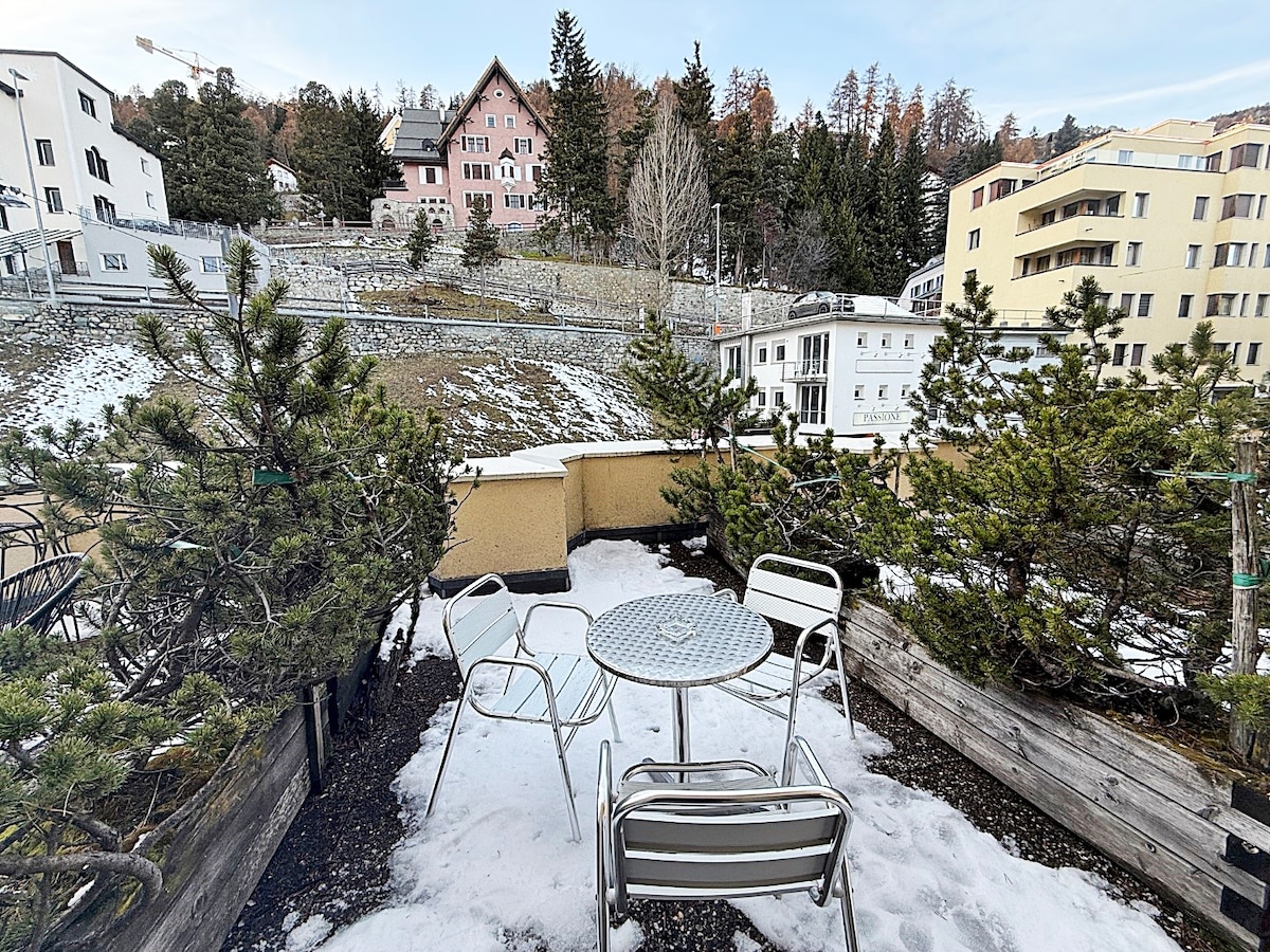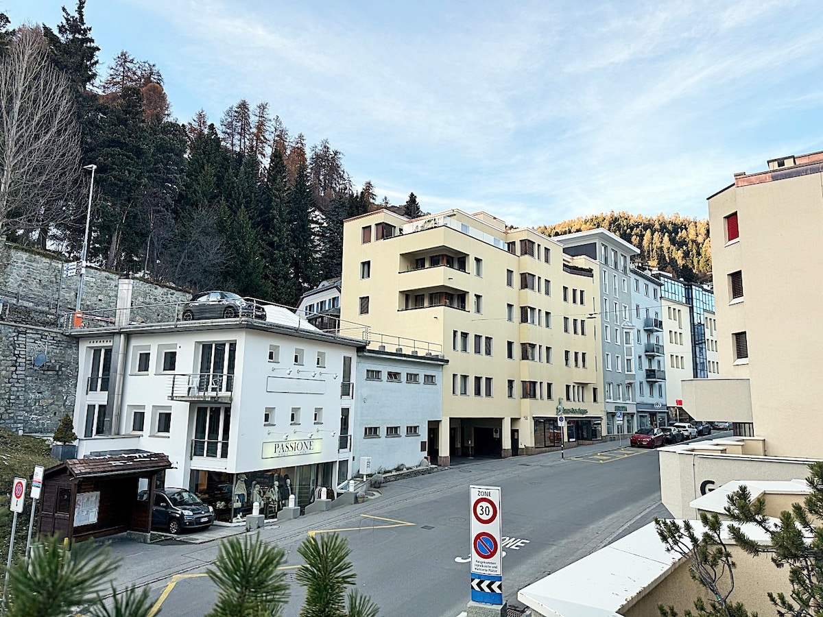 Neighborhood overviewCentral location right in St. Moritz village. Shopping street with pedestrian zone right in front of the building. Good restaurants and bars in the immediate vicinity. Coop shopping center just around the corner.