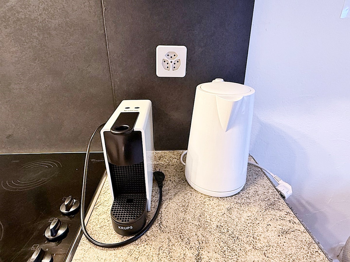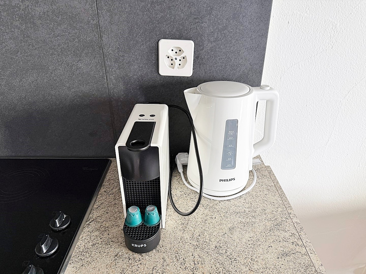 Nespresso coffee machine with free capsules. Kettle, toaster, fondue set, and raclette grill.